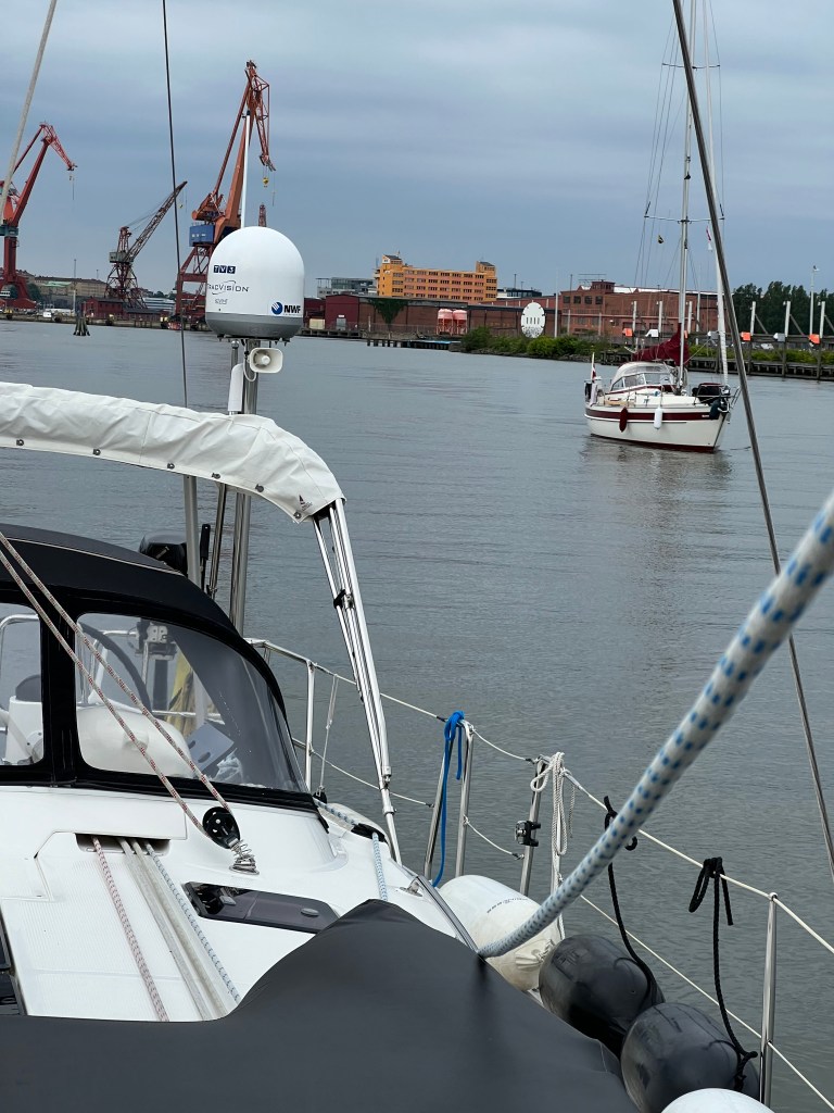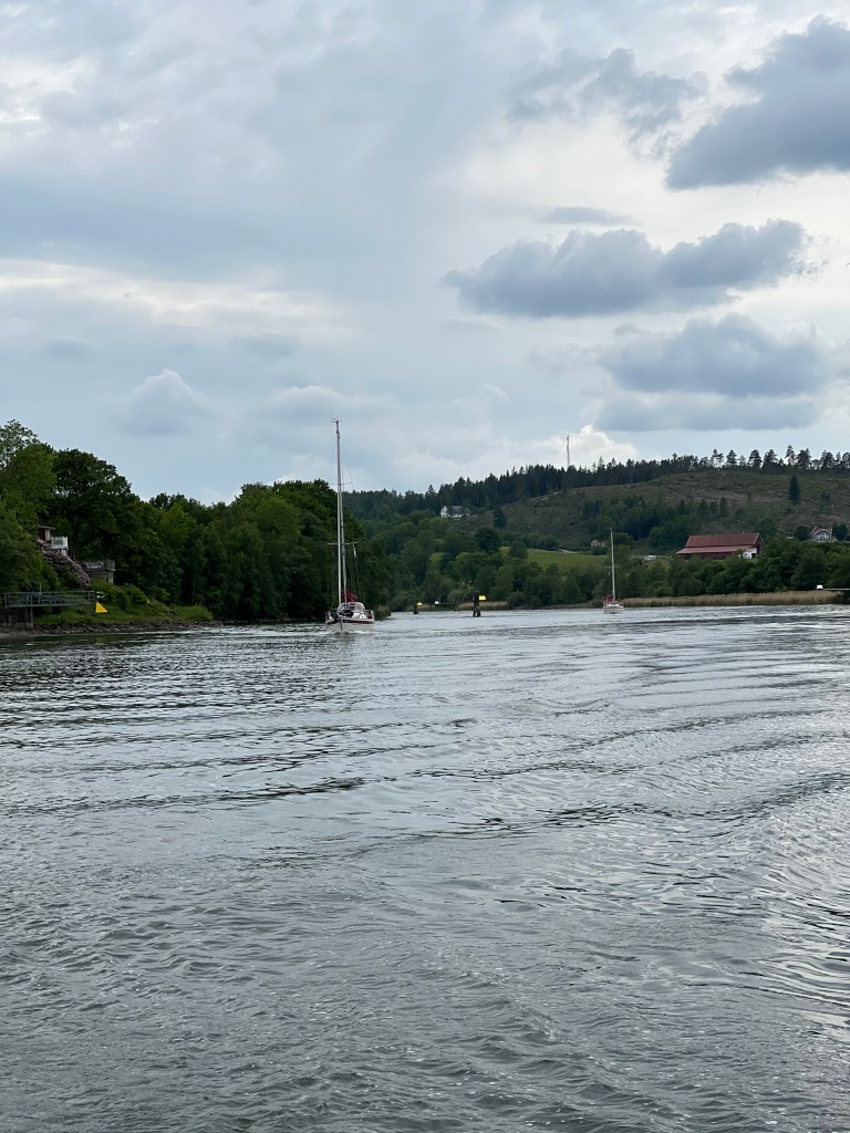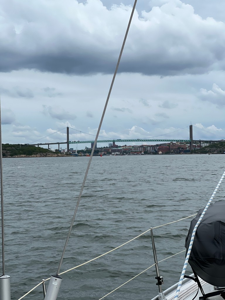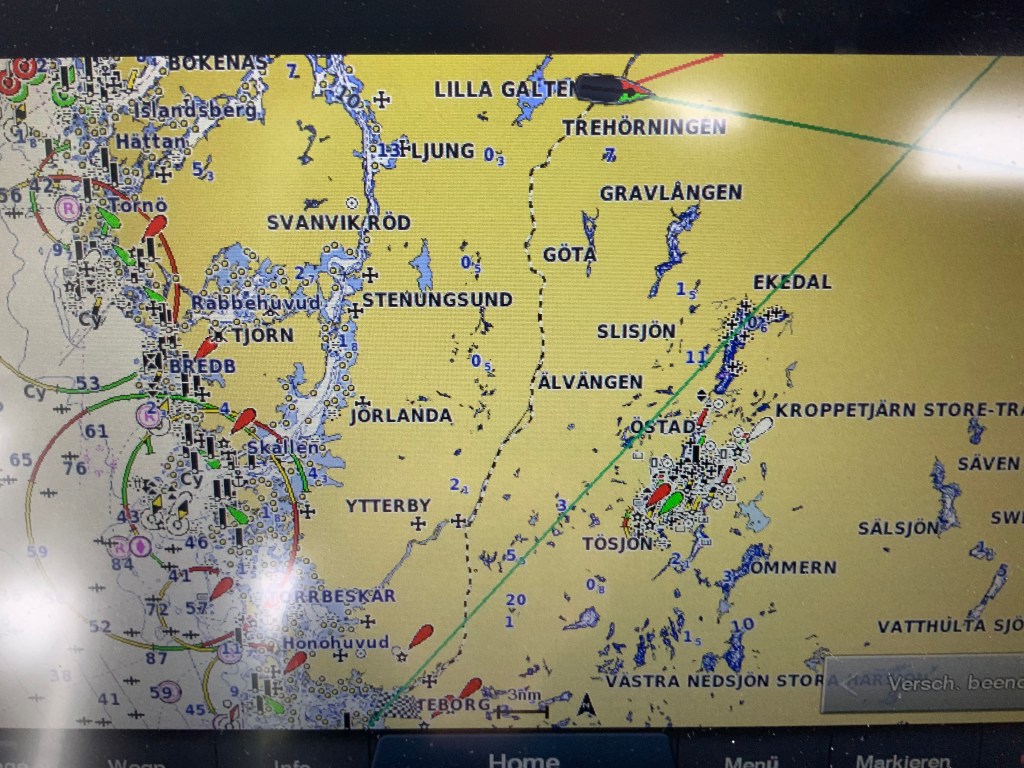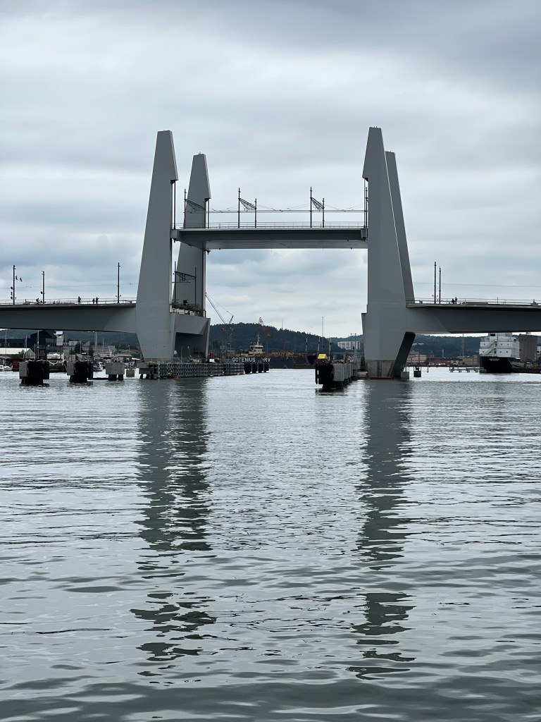 Pünktlich um 09:00 h haben wir heute in Göteborg im Hafen Lilla Bommen abgelegt. Aber die Reise sollte noch nicht los gehen. Die Brücke die uns den Weg versperrte sollte um 09:30 h öffnen, jedoch passierte bis 10:10 h gar nichts. Aber dann ………..