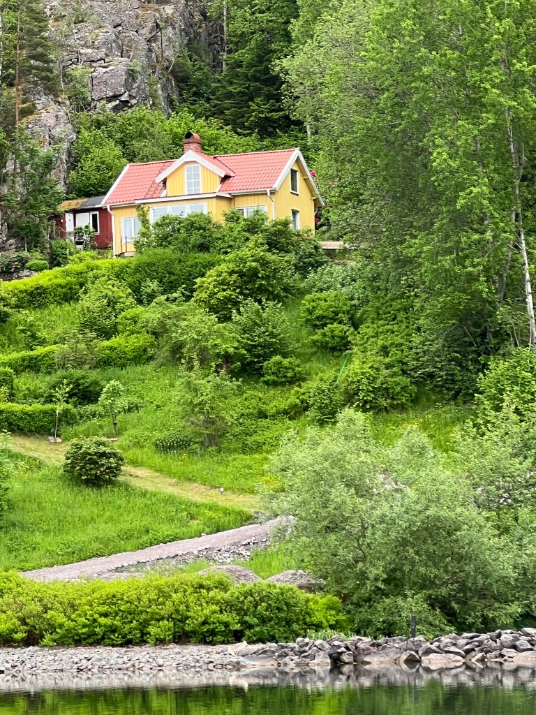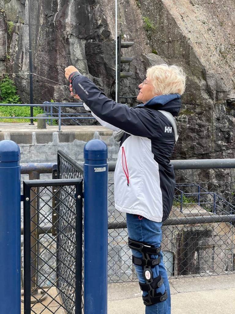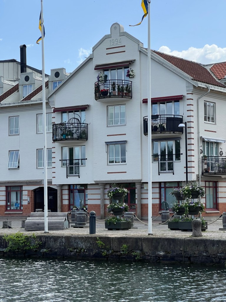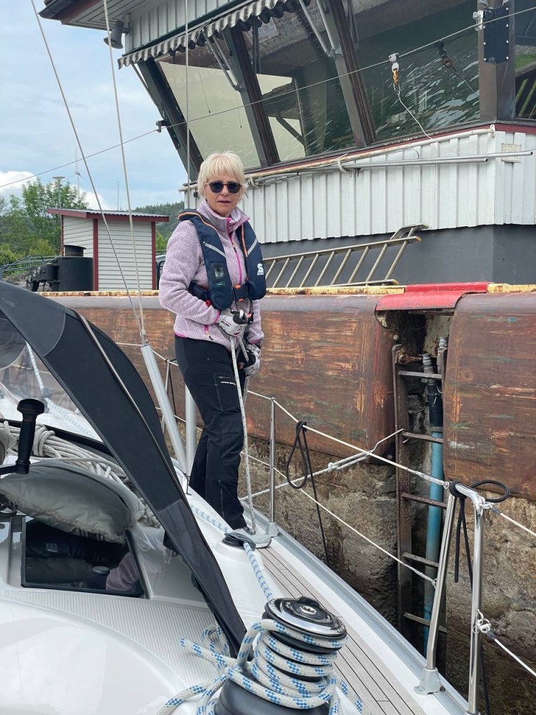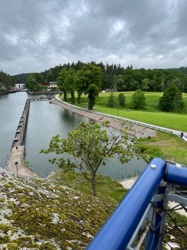 Aber, das hat Brigitte einige Jahre ihres Lebens gekostet. Man stelle sich vor Brigitte wurde von mir nur mit einem Schleusenhacken ausgestattet 🤣 auf den anderen Schiffen wurde mit zahlreichen Leinen am Bug und Heck hantiert. Was macht man dann nur mit einem Hacken ? Doch am Ende hatten wir viel Stress weniger als alle anderen, hat der Skipper doch einmal Recht. So gut wie die erste Schleuse lief, haben wir gar nicht aufhören können. So haben wir gleich die nächsten in Angriff genommen, sogar eine dreifach Schleuse und zum Abschluss noch wieder eine einzelne Schleuse. Somit haben wir uns auf 37 m über den Meeresspiegel bringen lassen. Die fehlenden ca. 60 m schaffen wir auch noch. Der Tag war somit um 20:30 h beendet in Trollhätten.