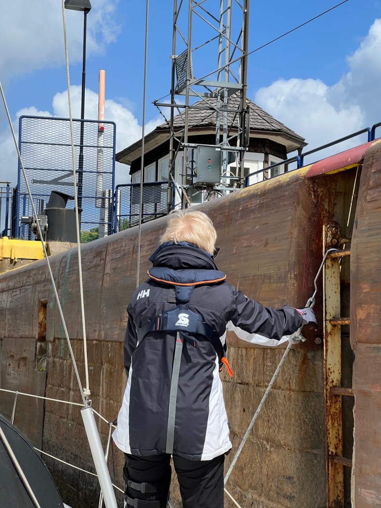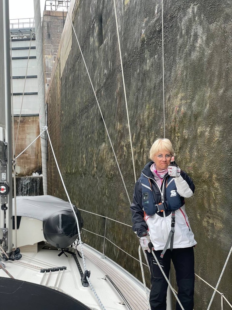 Um 17:00 h kam nun der Moment der Wahrheit, die erste Schleuse in unserer Seefahrerlaufbahn 🤔.