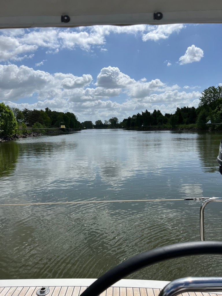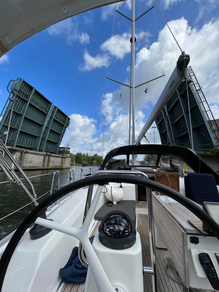 Somit starten wir mit 70 min. Verspätung zu unserem Abenteuer. Die fast 29 sm zu unserer ersten Schleuse zogen sich nur so dahin, wir mussten 4 Brücken passieren und die Wartezeiten waren immer dabei. Aber ansonsten war es schön.