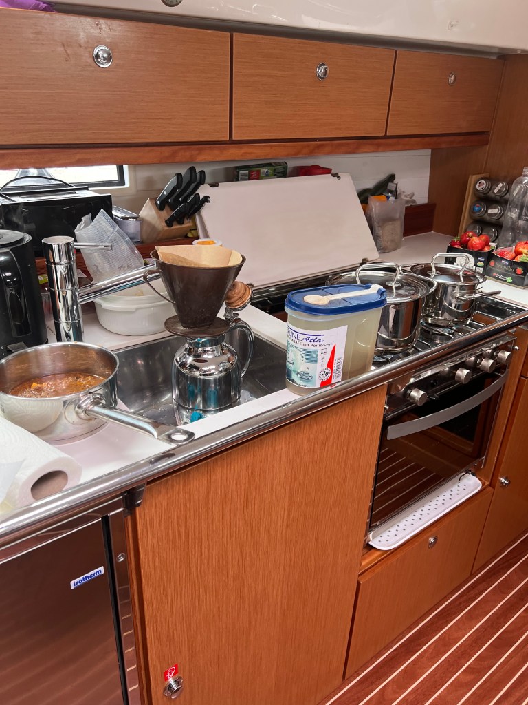 Na ja, wo man eigentlich nicht drüber spricht, man muss während so einer Fahrt auch Wäsche waschen und alle Arbeiten wie zu Hause erledigen.