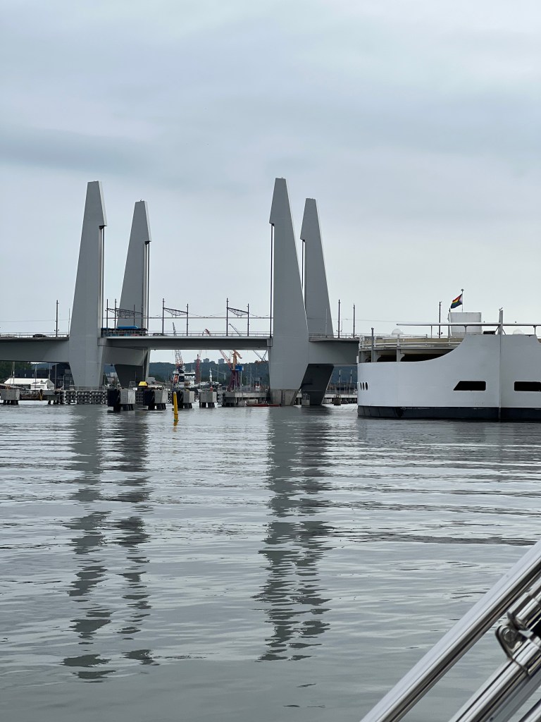 Das ist die Brücke die nicht aufgehen wollte, nachdem wir so geduldig waren ging sie doch auf.