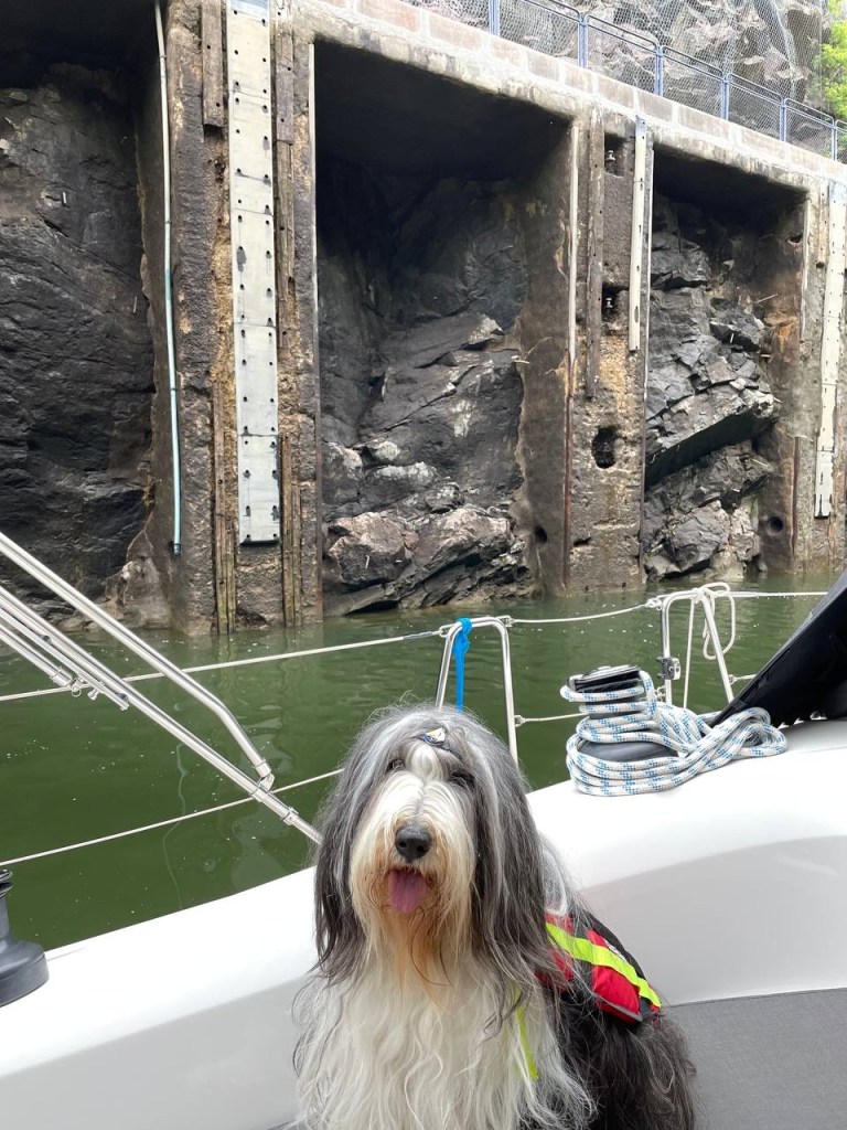 Ich wurde gezwungen auf den Wunsch einer einzelnen Person noch einmal zu erwähnen wie Vorbildlich sich Bella an Bord verhält. Sie schafft es sogar bei einem kurzen Stop vor unserer ersten Schleuse mit Brigitte von Bord zu gehen um zu pischern und wieder zurück an Bord zu kommen. Auch in den Schleusen bleibt Sie ruhig und versucht nicht zu stören.