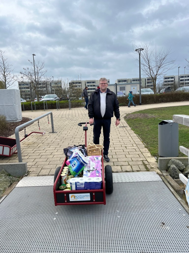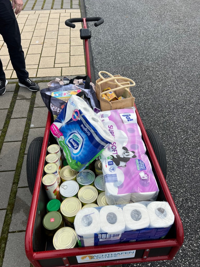 Die Karren sind alle samt voll und müssen vom Auto zu Schiff gebracht werden und hier dann auch noch verstauen.😉