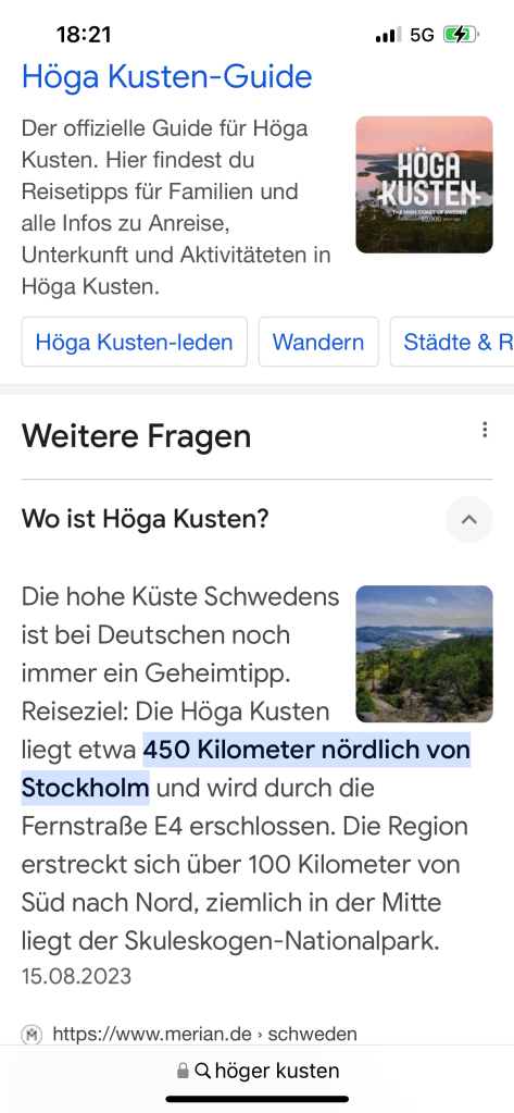 Im letzten Jahr haben wir Euch mit zu den Aland Inseln genommen, in diesem Jahr wollen wir nach Höga Kusten, also noch weiter Richtung Nord. Das Wetter wird uns auch in diesem Jahr begleiten. Eine Veränderung zur Besserung ist noch nicht ab zu sehen.