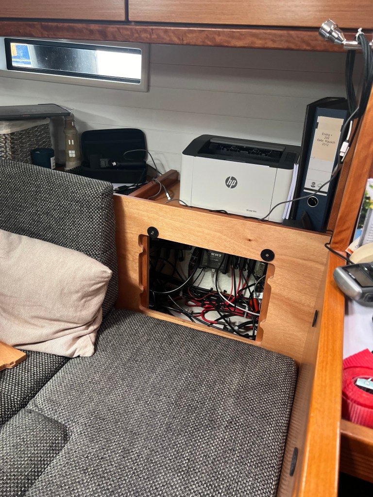 Zum Schluß haben wir das Kabel von unserer Starlink Antenne noch durch das ganze Schiff gezogen.