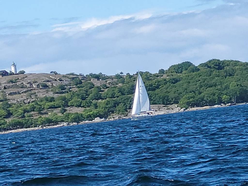 Der Regen gestern hat uns ja ganz schön auf die Probe gestellt, heute soll es zu mindest trocken bleiben, schauen wir mal. Unsere Reise geht heute zu der in 30 sm entfernten Insel Hanö. Der Wind kommt etwas achterlich so bin ich froh, das der Autopilot die meiste Zeit den Kurs halten wird.