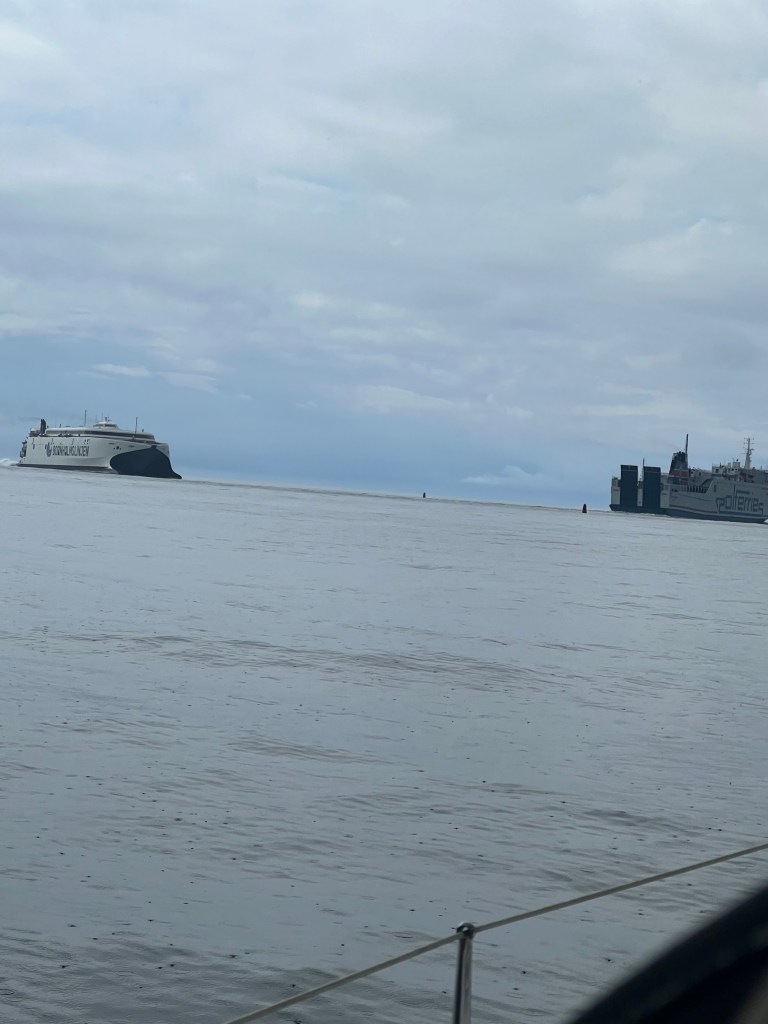 Wir sind nicht die einzigsten die weiter wollen, in der Hafeneinfahrt staut es sich. Hier hat nunmal die Großschifffahrt Vorfahrt. 😉