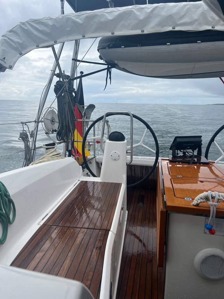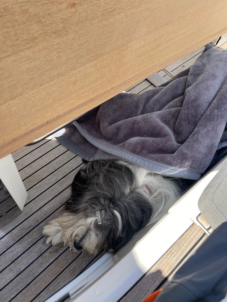 Na ja, mit Bella ging es heute nicht so. Bei Wind um 5 achterlich war ihr nicht wohl im -Magen. Macht ja nichts kann man alles wieder mit einem Eimer Wasser wegspülen. 🤮