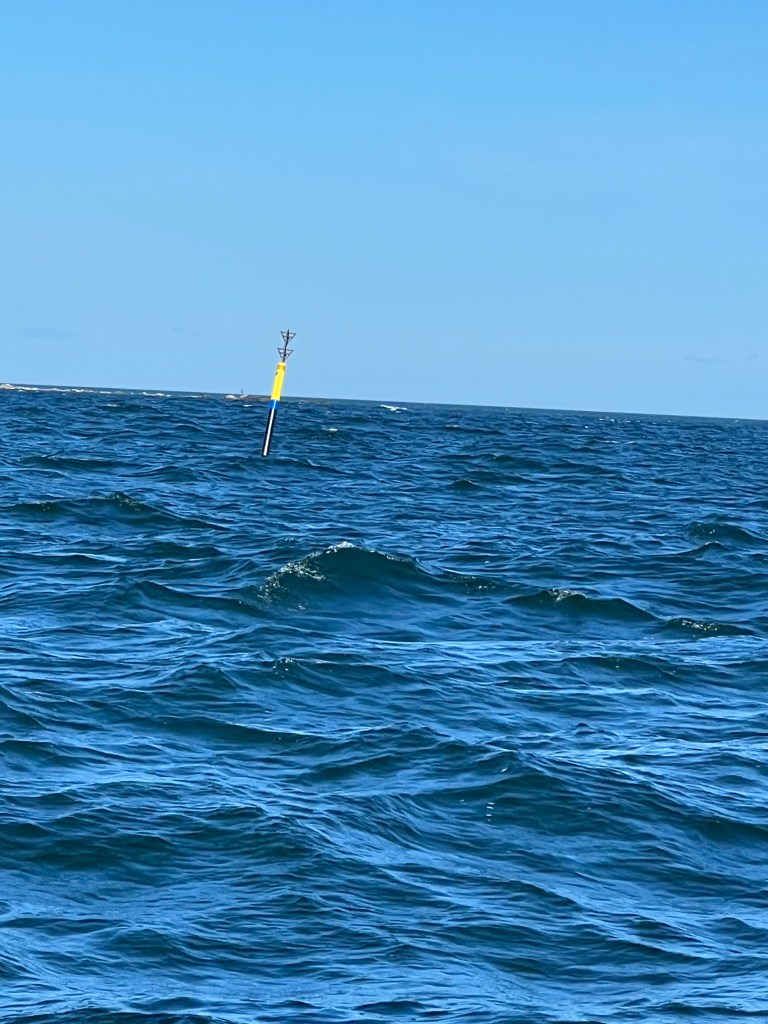 Nach einem knackigen Segeltag haben recht flott die Untiefentonne erreicht die den Eingang zum Kalmasund anzeigt,