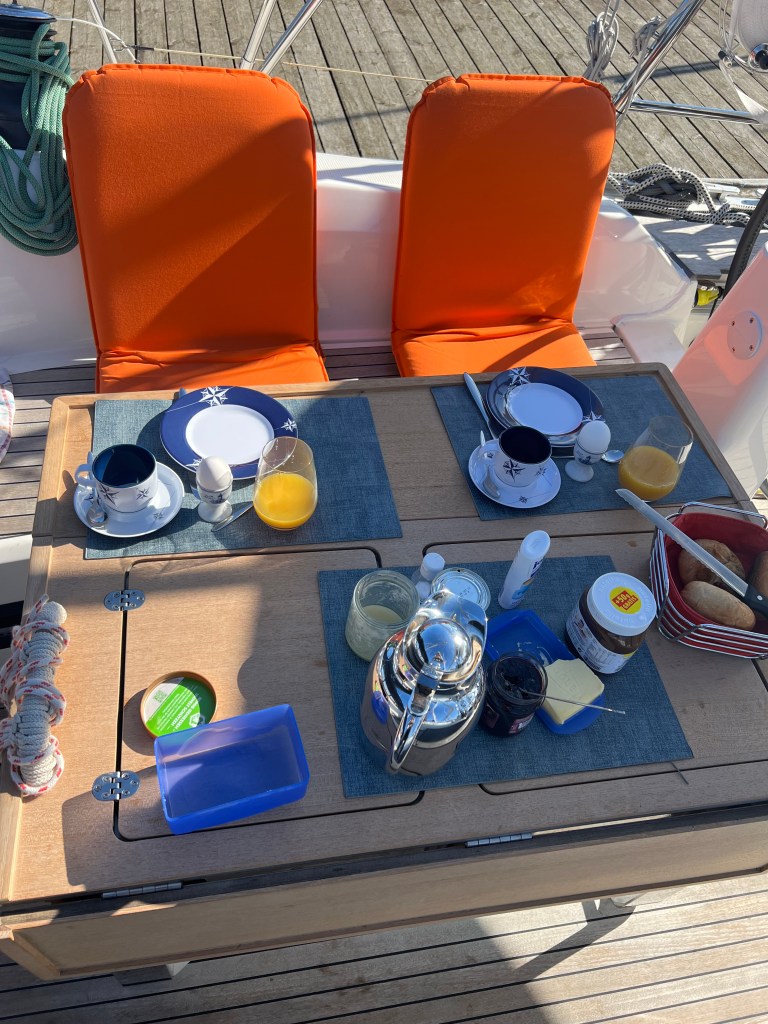 Das erste Frühstück im Cockpit und das am 16.06. des Jahres. Wo sind die Sommer von früher.