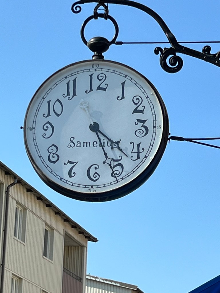 Nein, hier ist nicht die Uhr stehen geblieben. In Schweden ist es immer noch sehr verspielt. Keine Kaufhäuser sonder immer noch viele kleine Geschäfte.