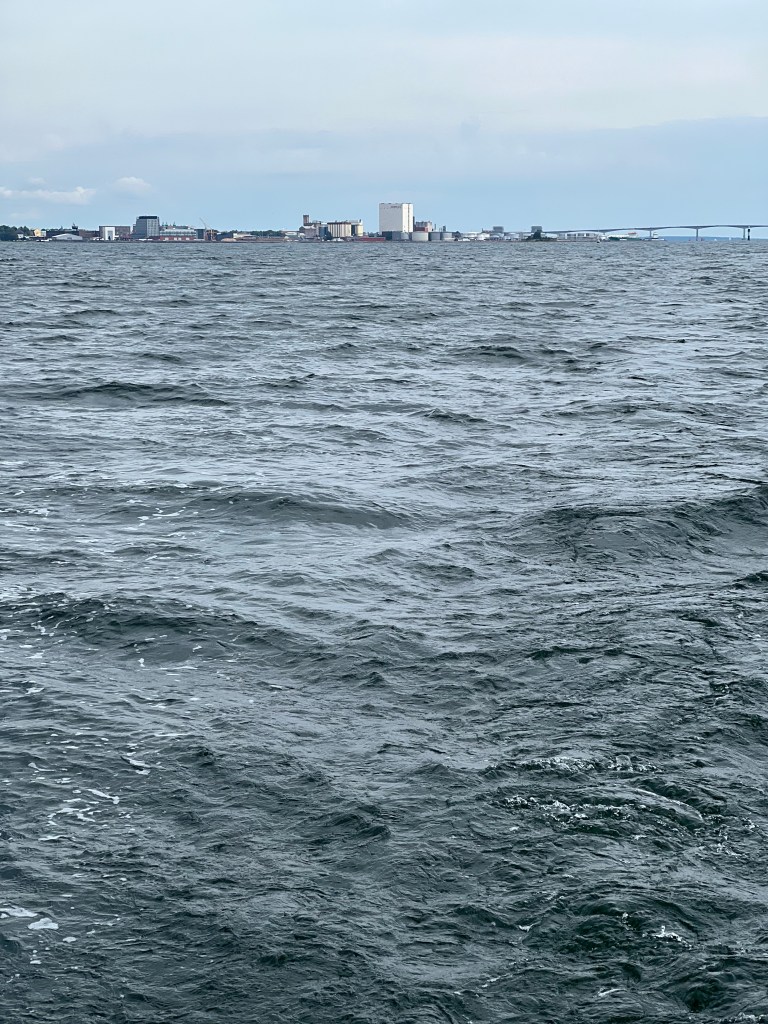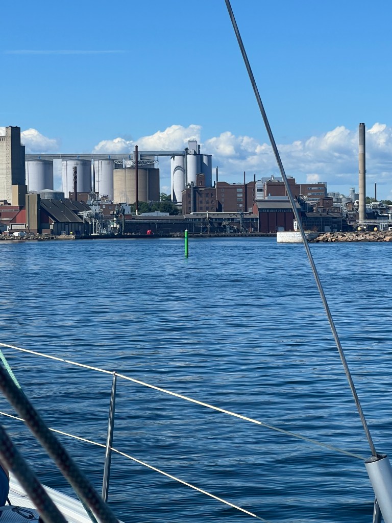 Die Schären sind augenscheinlich vorbei. Industriegebäude begrüßen uns. 😒 Schön ist etwas anderes. Aber jetzt erst ankommen und dann meckern.