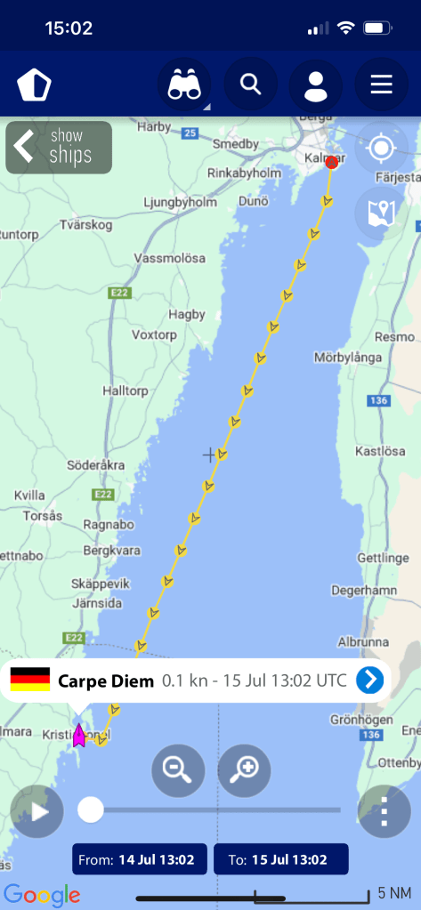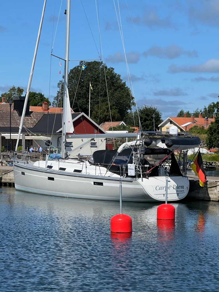 Und so ist auch gekommen, der Wind aus West brachte uns ein großes Stück weiter nach Süden. Und dann drehte der Wind auch noch auf Süd West so das der Kurs nach Karlskrona fast von allein lief. Nach 32 sm sind wir pünktlich in die Marina auch eingelaufen. Und jetzt einige Bilder die wir schiessen konnten. 😃