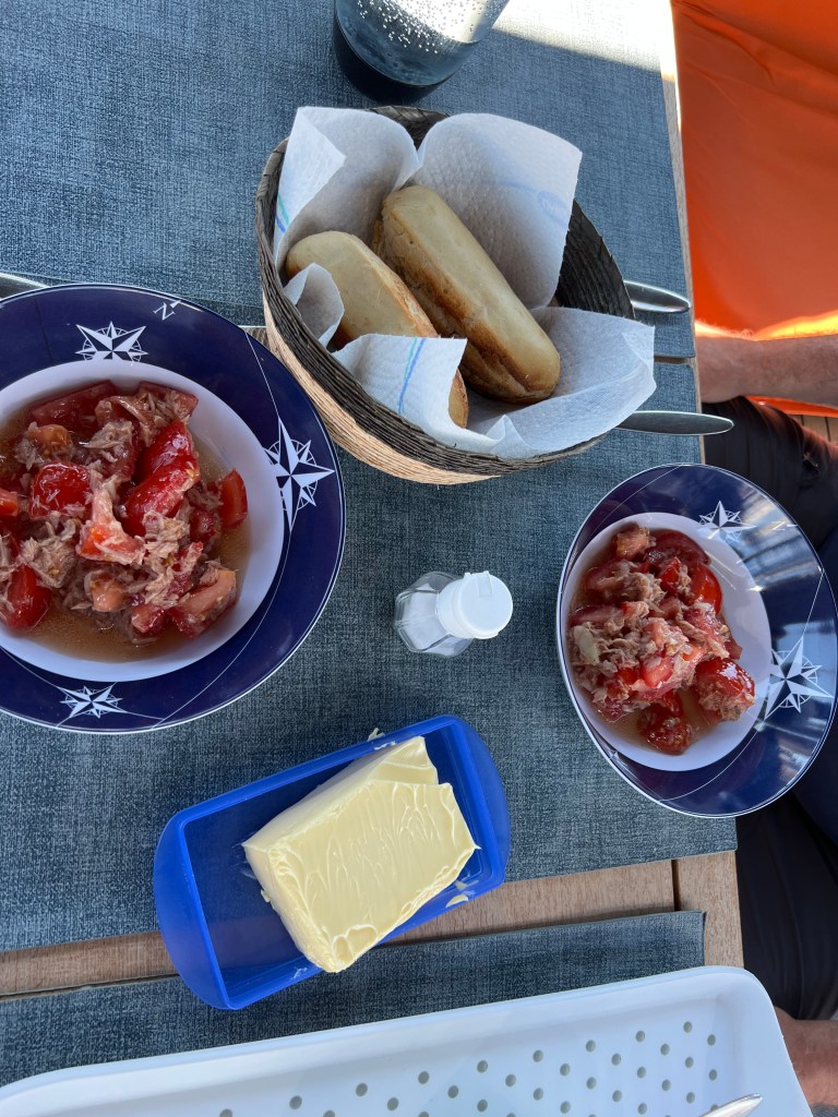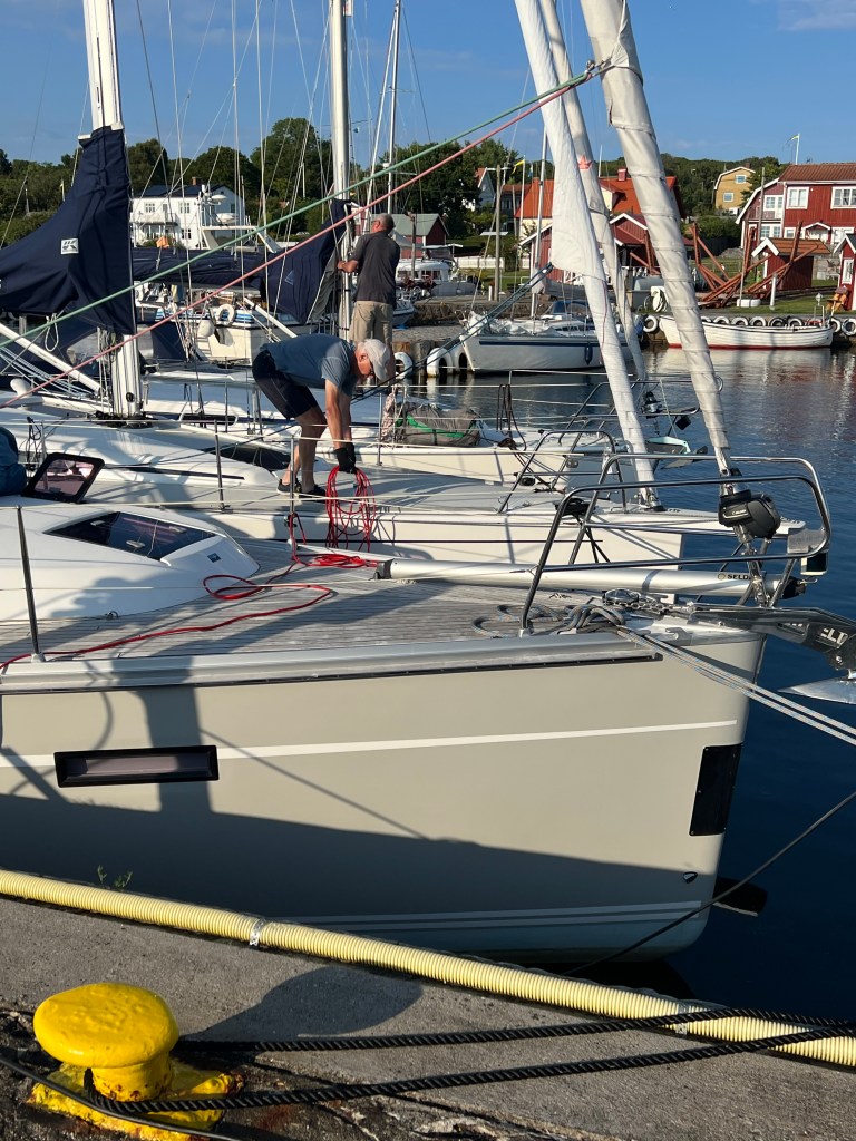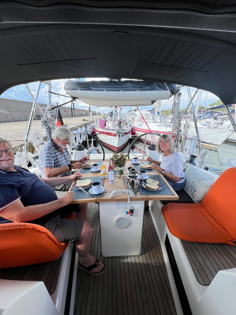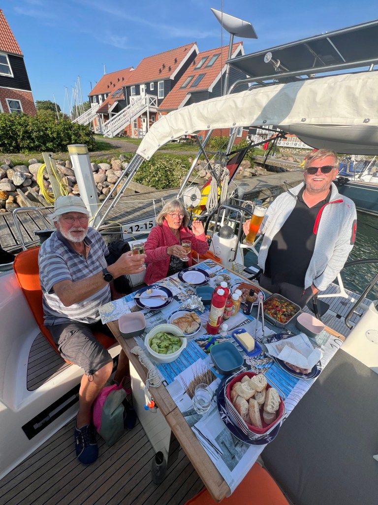 Wir sind heute morgen wach geworden und? Richtig der Sommer schaut wieder vorbei. 😎 Gestern Abend hat sich Ruth von der Finnale gemeldet und uns mit geteilt, das der Kurs nach Simrishamn morgen also heute für Sie ungünstig ist und ob wir uns nicht auf Hanö treffen wollen. Da brauchten wir nicht lange überlegen, klar bleiben wir hier, wir freuen auf ein Wiedersehen. 😃