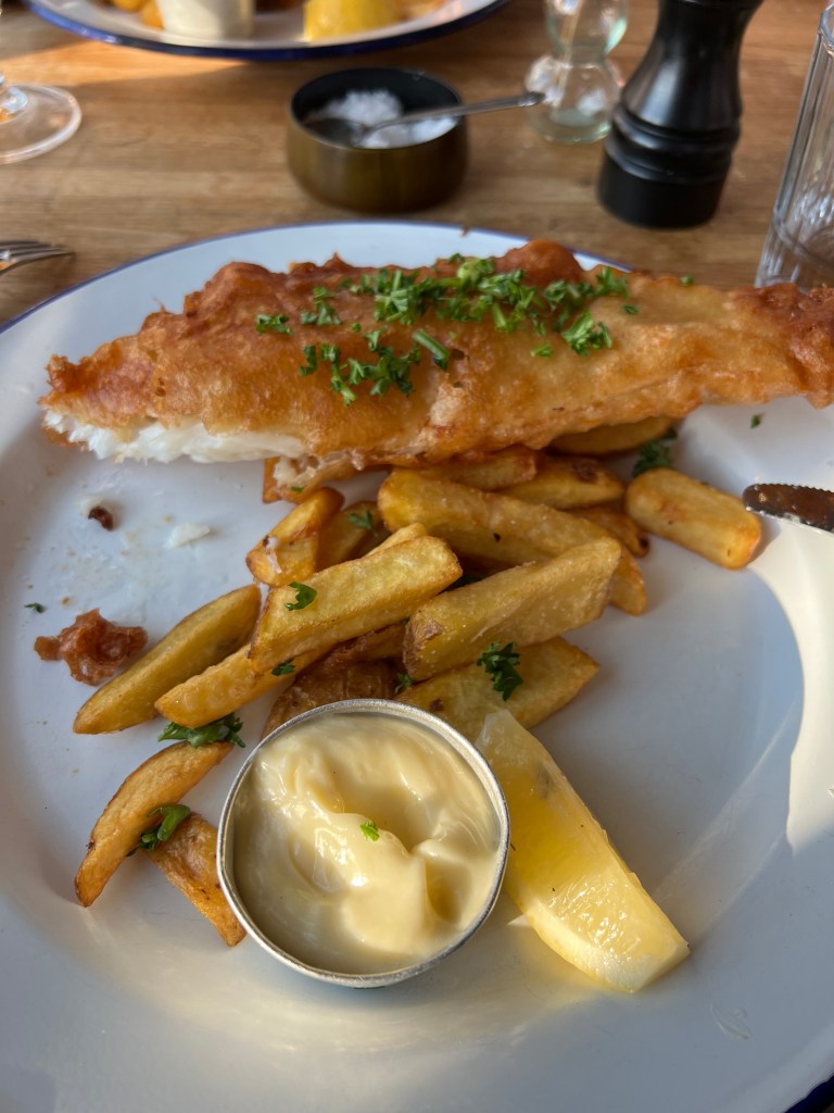 Bei Fisch und Chips haben wir es uns gut gehen lassen. 😉