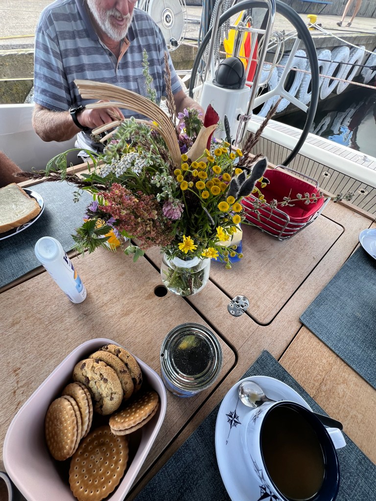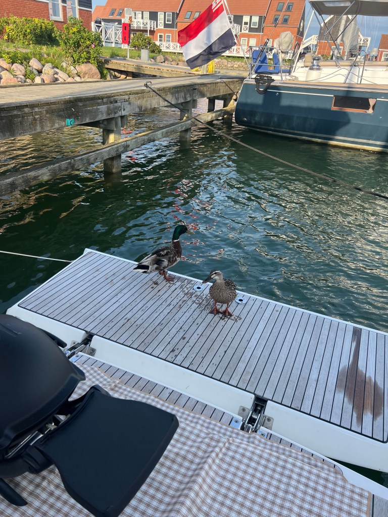 Der Hafen fühlt sich rasant schnell, es gibt keine Plätze mehr am Kai, nur noch Päckchen ist frei. 😳 Jetzt warten wir auf Ruth und Lothar mal sehen wann sie ankommen. 😃