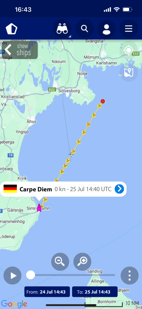Die Reise führt uns heute zurück nach Simrishamn, der versprochene Wind hielt leider nicht die ganze Überfahrt stand. Die letzten 1,5 Stunden mussten wir Motoren. 🥹